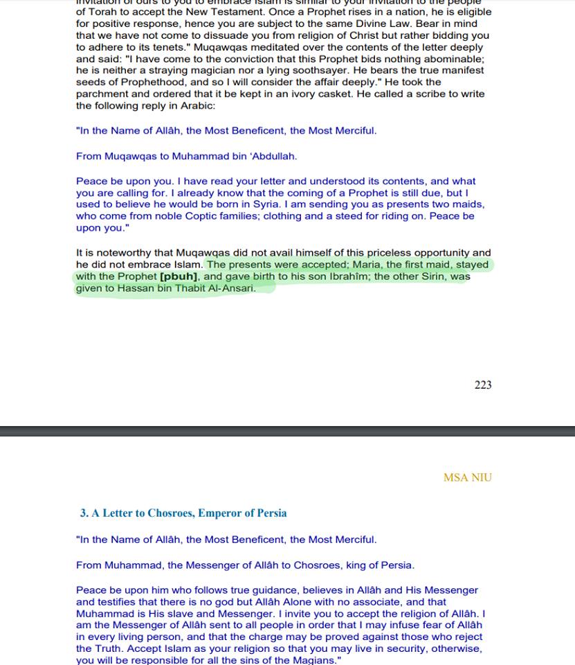 Asif bro, isn’t it possible that Maria was married to Muhammad (pbuh) and Shirin was just sent to him as a gift???