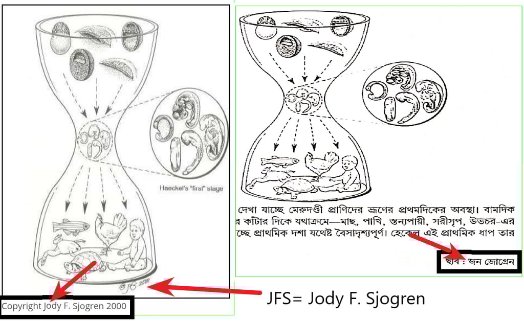পরবর্তী পরিচ্ছদে চলে এলাম। বাংলা বইটিতে এই পরিচ্ছদের নাম, “হেকেলের ভণ্ডামো” আর বিদেশী বইটিতে এর পরিচ্ছদের নাম “Haeckel’s Embryos“। নামটা একটু পরিবর্তিত। তবে এমনি নাম পরিবর্তন করে না দিলে লোকে দুয়ো দেবে; তাছাড়া একদম পুকুর চুরি করলেও মুশকিল।