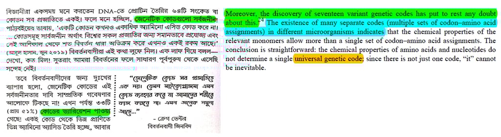 বাংলা বইতে লেখা ডারউইন নাকি চিঠিতে লিখেছিলেন, কিন্তু বিদেশী বইটিতে লেখা, “Darwin wrote in The Origin of Species” এবং চিঠির উল্লেখ নেই। এই ব্যাপারটাও মাথায় রাখবেন বই লেখার সময়। একটু এদিক ওদিক না করলে সবাই ধরে ফেলবে।